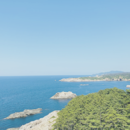 サテライトオフィスは日本海を見下ろす高台に位置し、周囲は山々の緑に囲まれた、自然豊かな環境にあります。